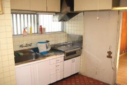 壁付けのキッチンです。スペースが狭く、不便を感じられていました。