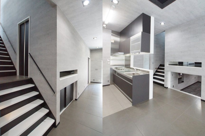 階段には手摺を設置し、スタイリッシュですが利便性も兼ね備えた作りになっています。