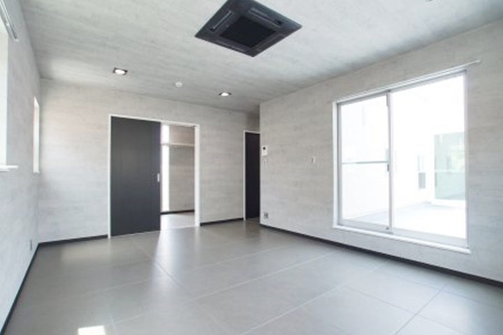 日差しをたくさん入れるために大きな窓を設置しています。また地面の色を白にすることで、太陽の光が反射しお部屋の中を明るく見せることができます。