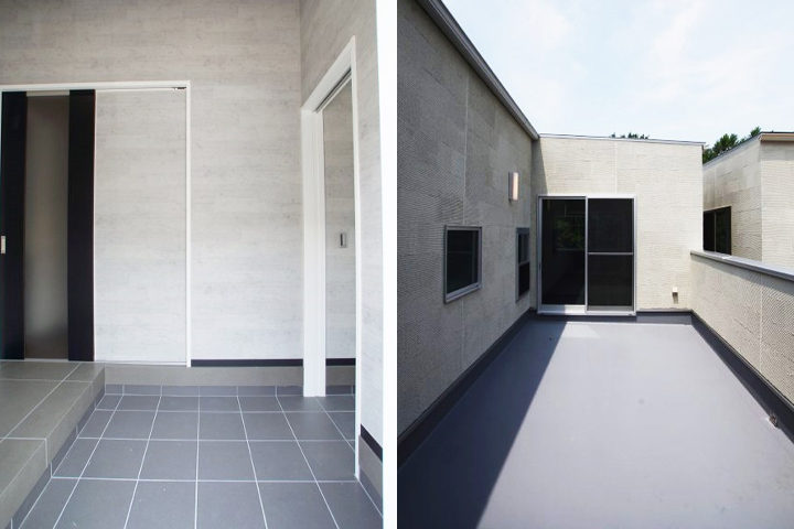 完成後の正面のお写真です。外観は落ちついたモノトーン調で施工させていただきました。