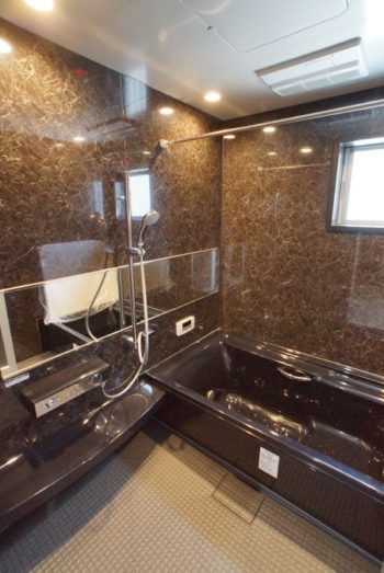浴室はシックで落ち着いた色合いで、飽きさせないデザインとなっています。